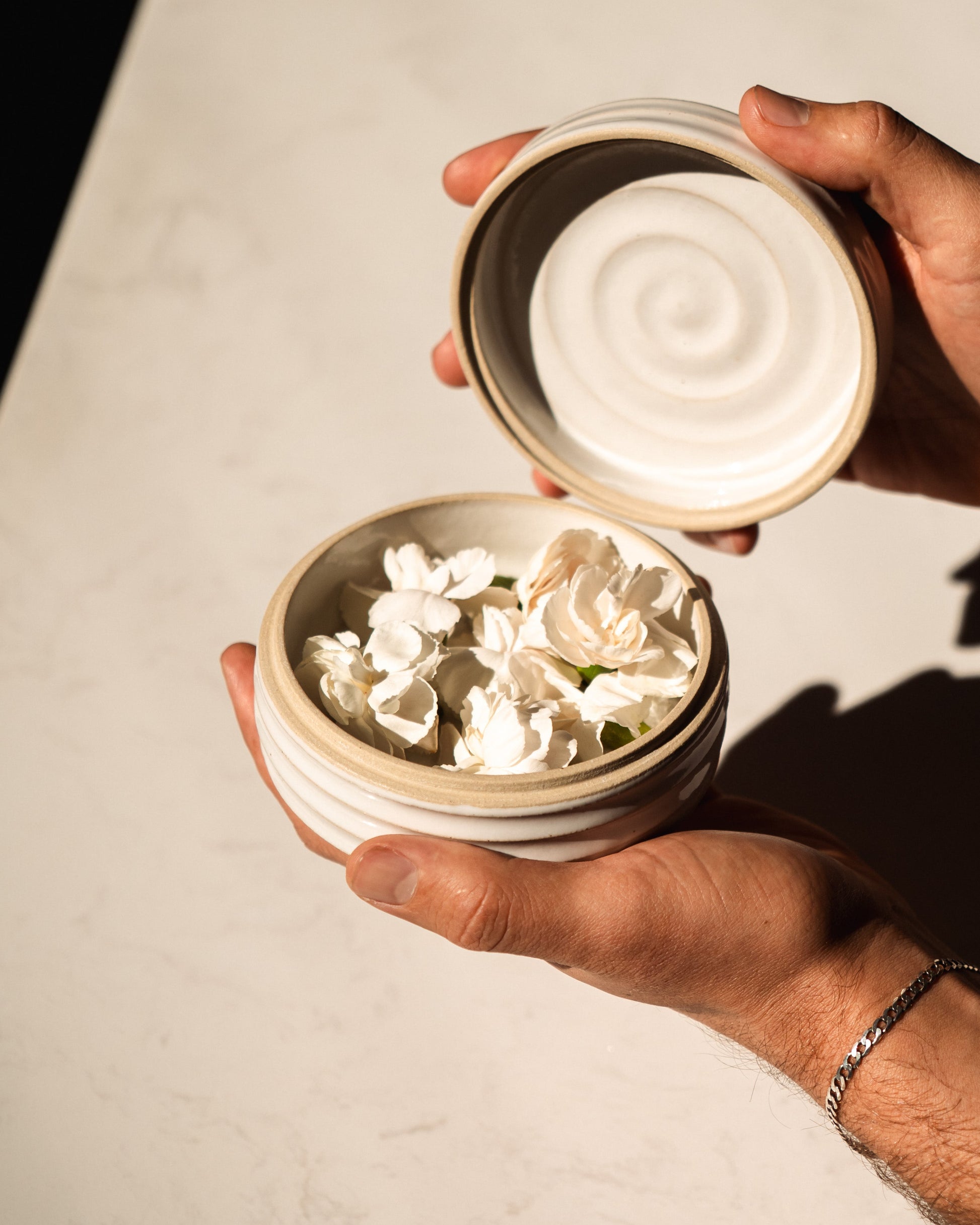 These pieces are formed close to home using local clay and South African materials, shaped by local hands. They’re thrown, trimmed, and fired with care, not just to be used, but to be held. To be part of a ritual. Fired with intention. Finished with meaning. No two exactly alike.